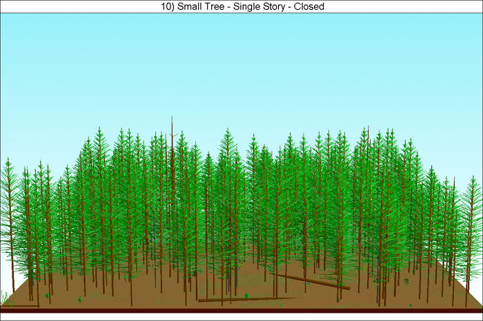 Tree size is 10-14" dbh, and there is a single canopy stratum. |