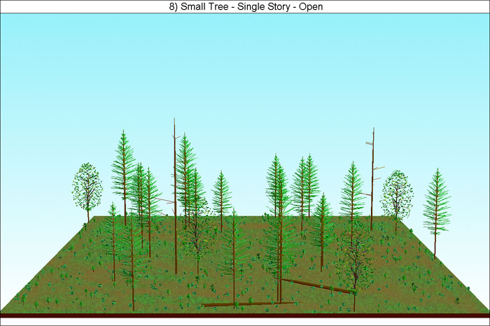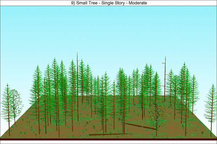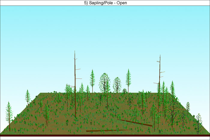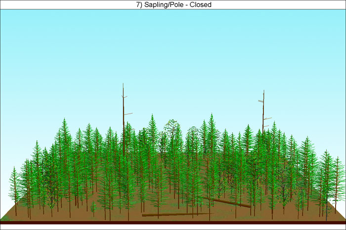 cover of sapling and pole sized trees. Tree size is 1"- 9" dbh and